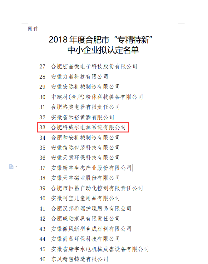 近日,合肥市经济和信息化委员会中小企业局对我市认定的“专精特新”企业名单予以公示,共有113家企业。经过评定和对成绩的认可,合肥乐鱼电源系统有限公司被授予“专精特新”中小企业资质。可谓是这连续几周阴雨天的一束温暖的光。