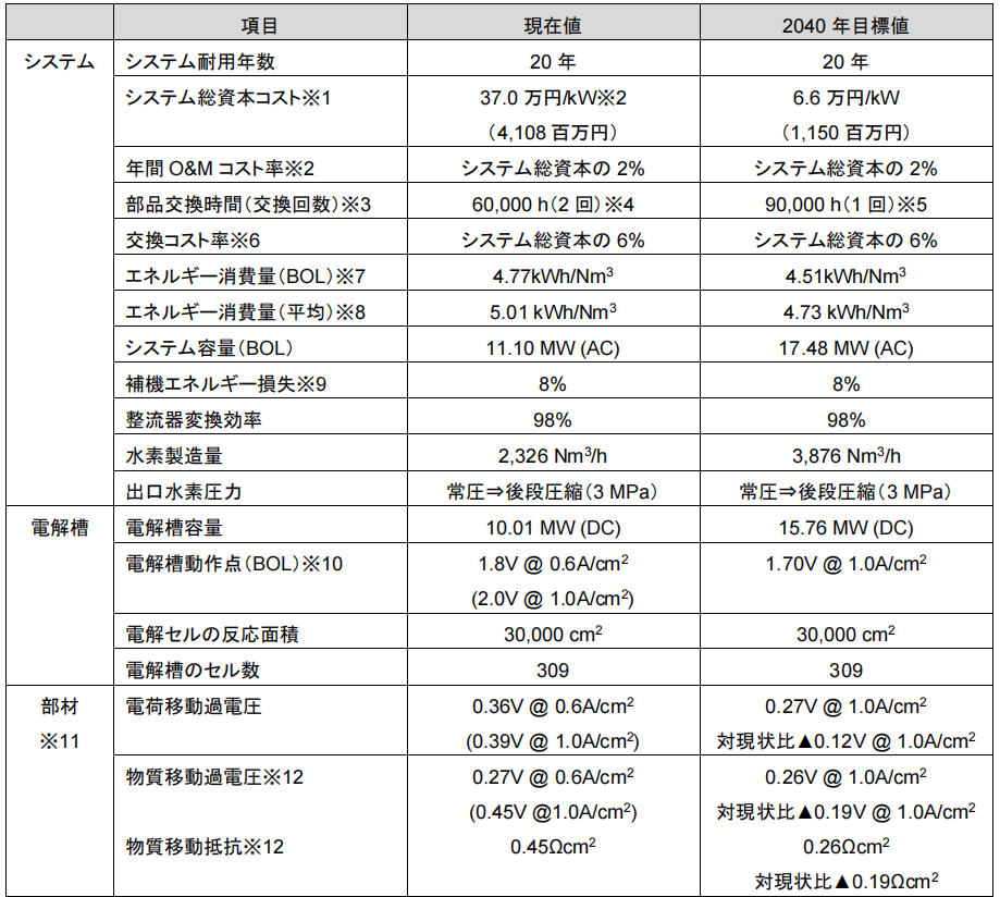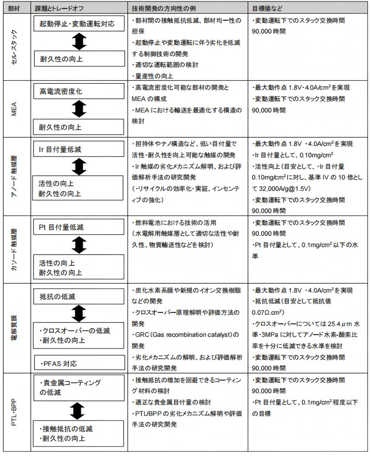 表2.2.6-2 PEMWE的技术开发项目和目标值
